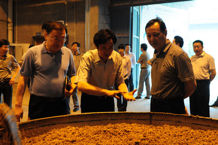 6月15日,黑龍江省政府研究室副主任董偉俊、黑龍江省食品協(xié)會(huì)秘書(shū)長(zhǎng)車(chē)有春一行在湖北省政府研究室產(chǎn)業(yè)處處長(zhǎng)韓明山、宜昌市政府研究室副主任覃世斌等的陪同下,到枝江酒業(yè)參觀考察。枝江酒業(yè)董事長(zhǎng)蔣紅星、常務(wù)副總經(jīng)理譚崇堯、副總經(jīng)理亓新明對(duì)來(lái)訪客人給予了熱情接待。
