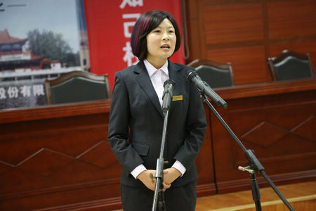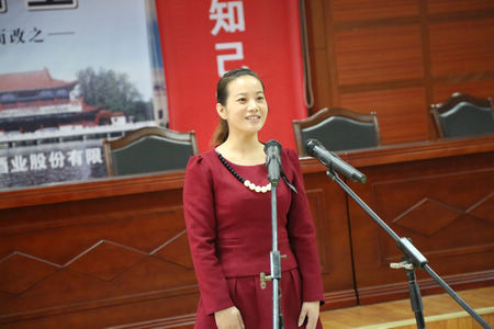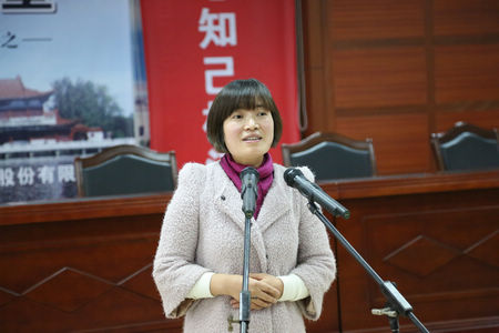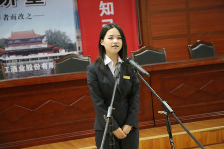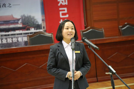 勾儲二車間的王春梅演講《我愿做枝江酒業(yè)的一塊磚》