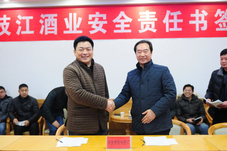 1月28日上午,枝江酒業(yè)2015年度“安全生產(chǎn)”和“社會管理綜合治理”兩個(gè)目標(biāo)管理責(zé)任書簽訂儀式在二樓多功能廳舉行。公司高管、中層以上管理干部參加了會議。會議由公司常務(wù)副總經(jīng)理譚崇堯主持。