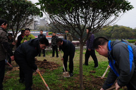 3月19日,由枝江酒業(yè)總裁曹榮開帶隊,總經理陳洪衛(wèi)、黨委書記張華等高管及部分員工代表到百里洲鎮(zhèn)進行義務植樹活動。百里洲鎮(zhèn)被譽為“萬里長江第一洲”,是全國少有的農業(yè)大鎮(zhèn),以其獨特的地理位置在全國有較高的知名度。特別是近幾年火熱的環(huán)島自行車比賽,吸引了不少外國朋友的參與,已經成為自行車愛好者的樂園。為支持百里洲做好綠化、亮化和美化工程,枝江酒業(yè)積極參與其中。枝江酒業(yè)總裁曹榮開表示:栽下一棵樹,是為了結下三分緣,結一分“綠滿荊楚”的緣,結一分為“城鄉(xiāng)一體、四化同步”添新綠的緣,結一分融入大自然的緣。百里洲鎮(zhèn)在抗洪廣場周邊規(guī)劃了“義務植樹林”,枝江酒業(yè)在規(guī)劃的區(qū)域植下9棵樹冠飽滿圓潤、分支點在1.6米以上、米徑10米以上的桂花樹。