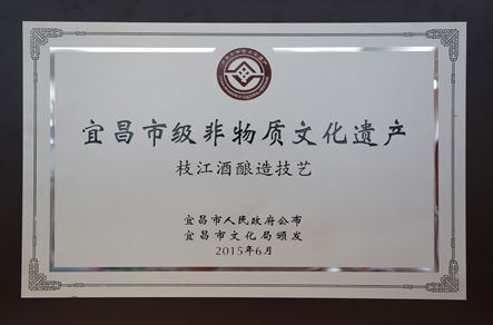 6月29日,枝江市文化體育旅游局局長李建庭一行為枝江酒業(yè)送來了宜昌市人民政府、宜昌市文化局頒發(fā)的“宜昌市級非物質(zhì)文化遺產(chǎn)”牌匾,枝江酒釀造技藝成為宜昌市級非物質(zhì)文化遺產(chǎn)。非物質(zhì)文化遺產(chǎn)是世代相承,與群眾生活密切相關(guān)的文化表現(xiàn)形式,既是歷史發(fā)展的見證,又是珍貴的、具有重要價(jià)值的文化資源。枝江酒的釀造技藝從晚清時(shí)期的謙泰吉槽坊開始,已歷經(jīng)六代傳人。保護(hù)和利用好這筆非物質(zhì)文化遺產(chǎn),對于踐行科學(xué)發(fā)展觀,傳承優(yōu)秀民族文化遺產(chǎn)具有重要意義?!爸啤?006年獲得中國地理標(biāo)志產(chǎn)品,2011年“枝江”注冊商標(biāo)被商務(wù)部認(rèn)定為“中華老字號”,對釀造技藝的傳承與保護(hù)一直是枝江酒業(yè)在踐行的發(fā)展觀。枝江酒業(yè)本著“保護(hù)為主、搶救第一、合理利用、傳承發(fā)展”的工作方針,將原始的釀造工具較完整地保留下來,成為見證釀造歷史的實(shí)物。