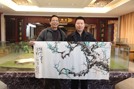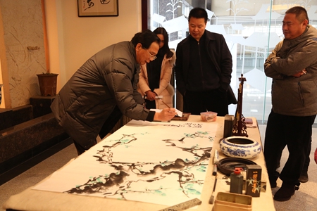 1月28日,國家一級(jí)美術(shù)師彭宗明到枝江酒業(yè)采風(fēng)。在枝江酒業(yè)銷售總經(jīng)理侯先圣的陪同下參觀了歷史文化展廳、釀造五車間、包裝三車間,對(duì)枝江酒業(yè)的歷史文化和獨(dú)特的釀造技藝表現(xiàn)出濃厚的興趣。在枝江酒業(yè)展廳,彭宗明現(xiàn)場揮毫潑墨,即興創(chuàng)作了“風(fēng)雨兩百年,柔雅一枝香”、“百年枝江,香滿乾坤”兩幅畫作。