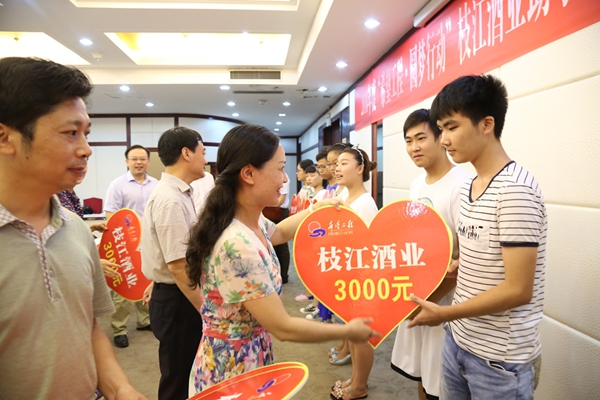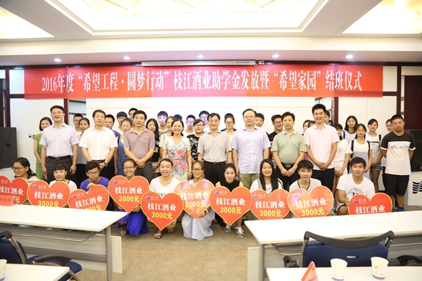 8月25日, 2016年度“希望工程?圓夢行動”枝江酒業(yè)助學(xué)金發(fā)放暨“希望家園”結(jié)班儀式在枝江國際大酒店隆重舉行。該項(xiàng)活動由共青團(tuán)枝江市委和枝江酒業(yè)共同舉辦。